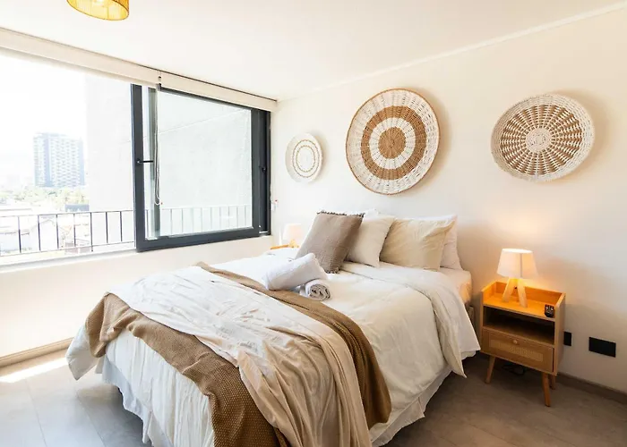 The 38 m² Hom I Piscina I Metro Irarrazaval I Gym Apartment Santiago is situated in the Nunoa district, 3.1 km from the huge park "Parque Metropolitano de Santiago", and features a fitness studio. The apartment has a patio with views of the city.